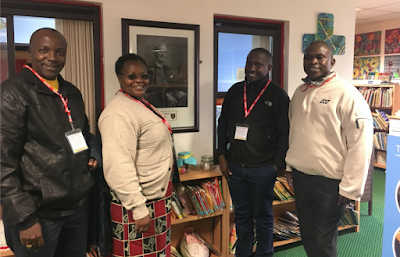 | Bishop Eridard, Mama Jane, Revd Paulson, Revd Canon Frederick at Oliver Tomkins School with the Photo of Bishop Oliver who founded the link |