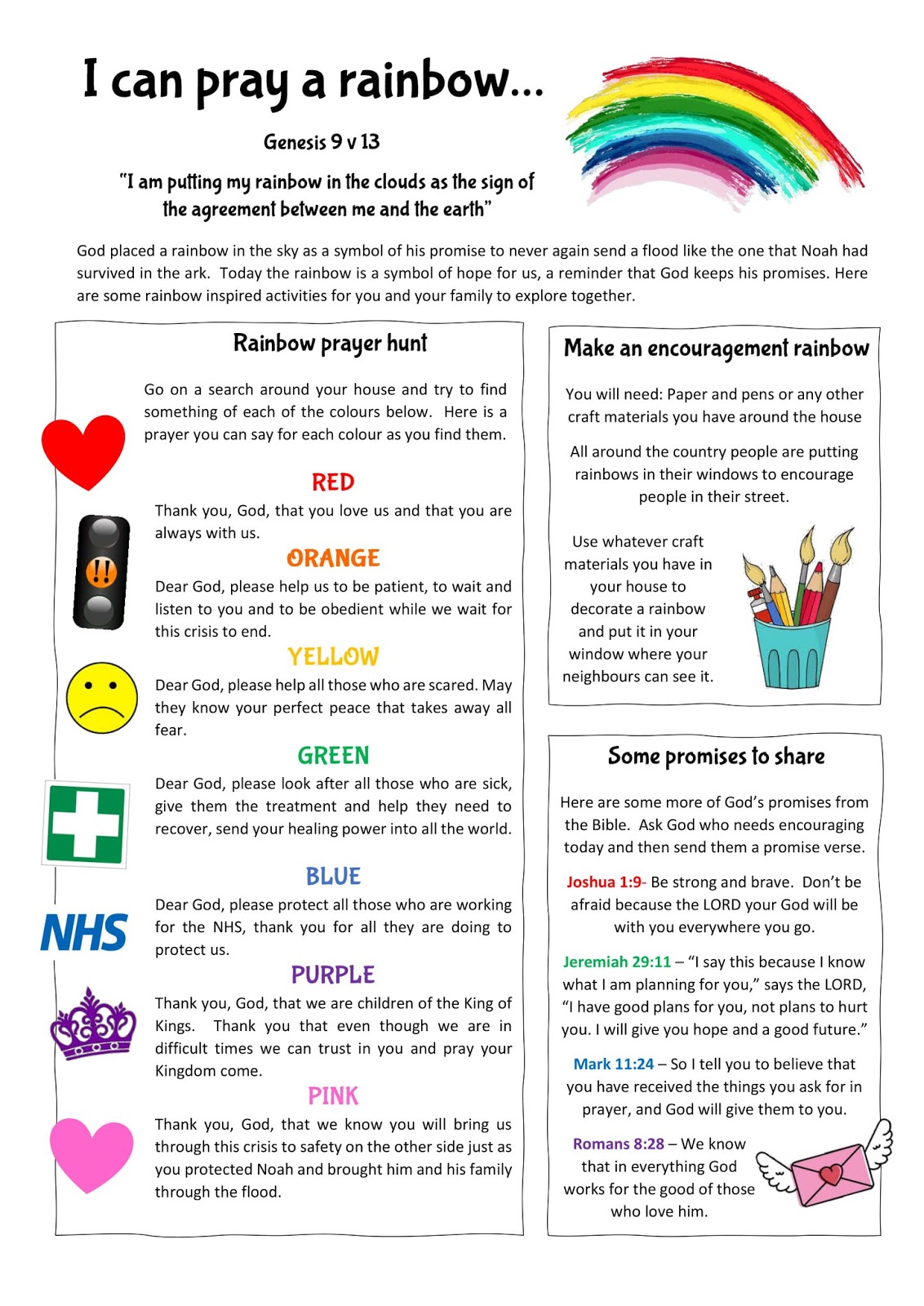 There’s a great idea for praying through the colours of the rainbow:
